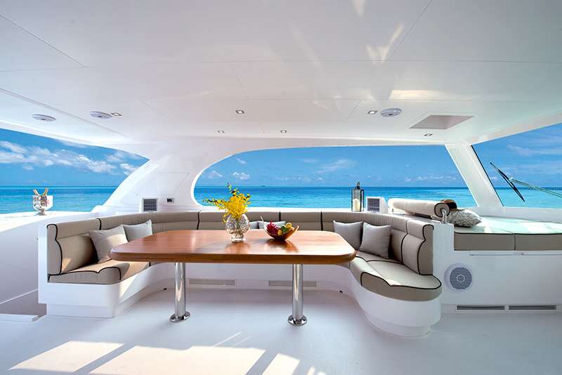 Usually catamarans, these vessels are stable at sea and offer a tremendous amount of deck space. The cabin layout provides for exceptional privacy and spaciousness. Multihulls are fast off the wind and have an exceptionally shallow draft. You can anchor in as little as three feet of water, and perhaps even wade ashore to the beach.